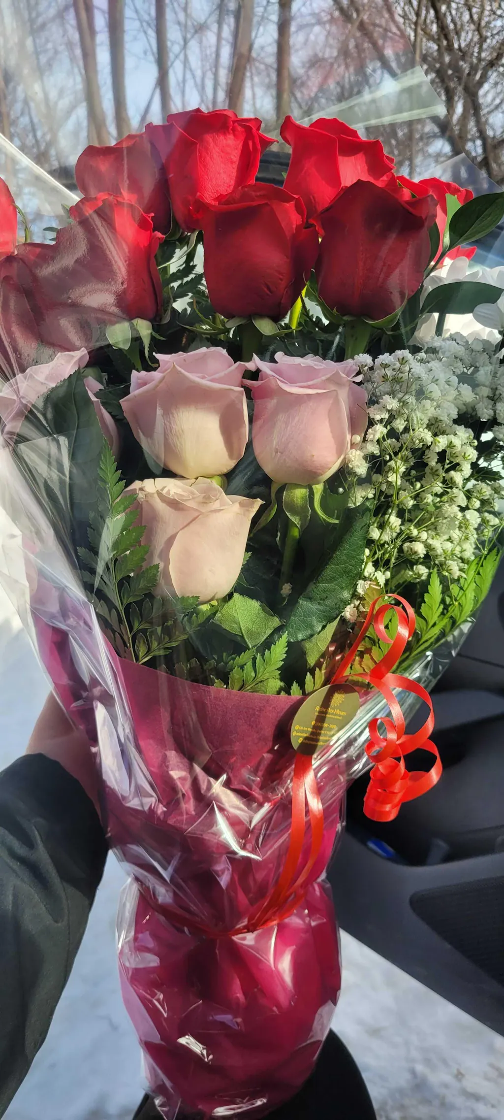 Offrez le Bouquet Amour Des Roses VI – mélange de roses rouges et roses pour la Saint-Valentin, les anniversaires ou les moments romantiques. Création artisanale par La Reine des Fleurs à Québec.